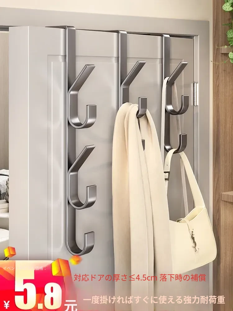 ドアフック 壁掛け衣類収納ラック - 穴あけ不要で強力、寮や家に最適!衣服、帽子、鍵をスッキリ整理!