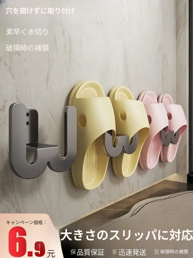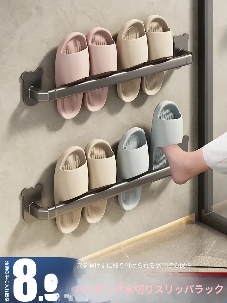 吸盤式スリッパラック - 浴室用穴あけ不要の便利収納!靴をスッキリ整理できる壁掛けタイプの水切りラックで、清潔なトイレ空間を実現。おしゃれで機能的な収納アイテム!