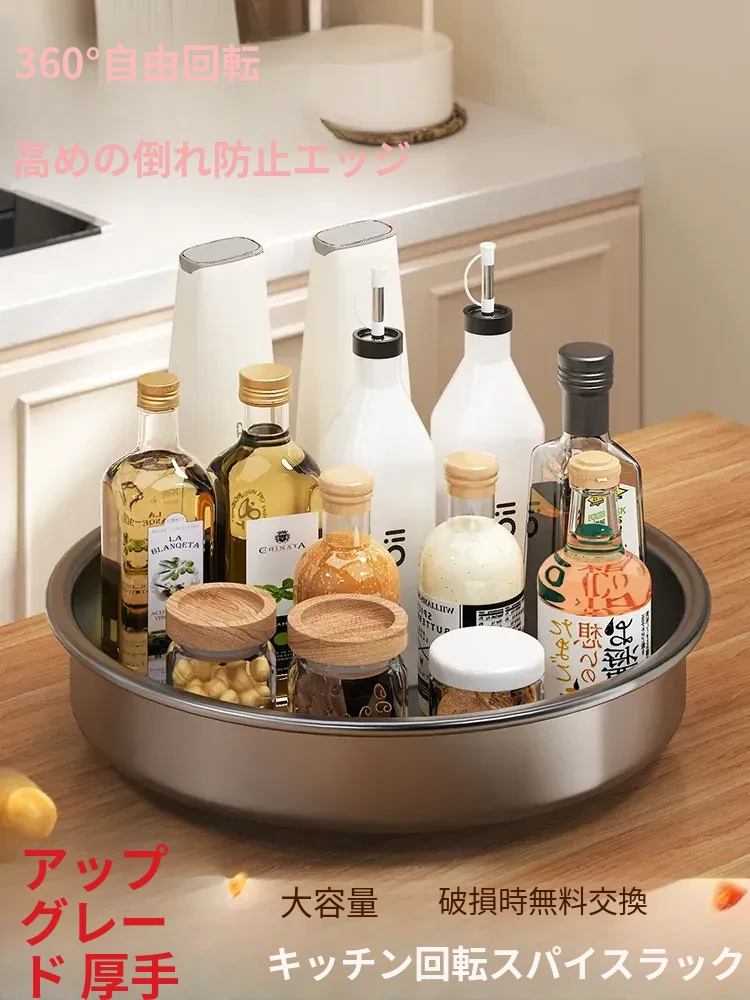 日本製の回転式調味料ラック - キッチンカウンターに最適な醤油ボトルや調味料をスマートに収納する必需品!使いやすさとスタイリッシュなデザインで、毎日の料理をもっと楽しく。