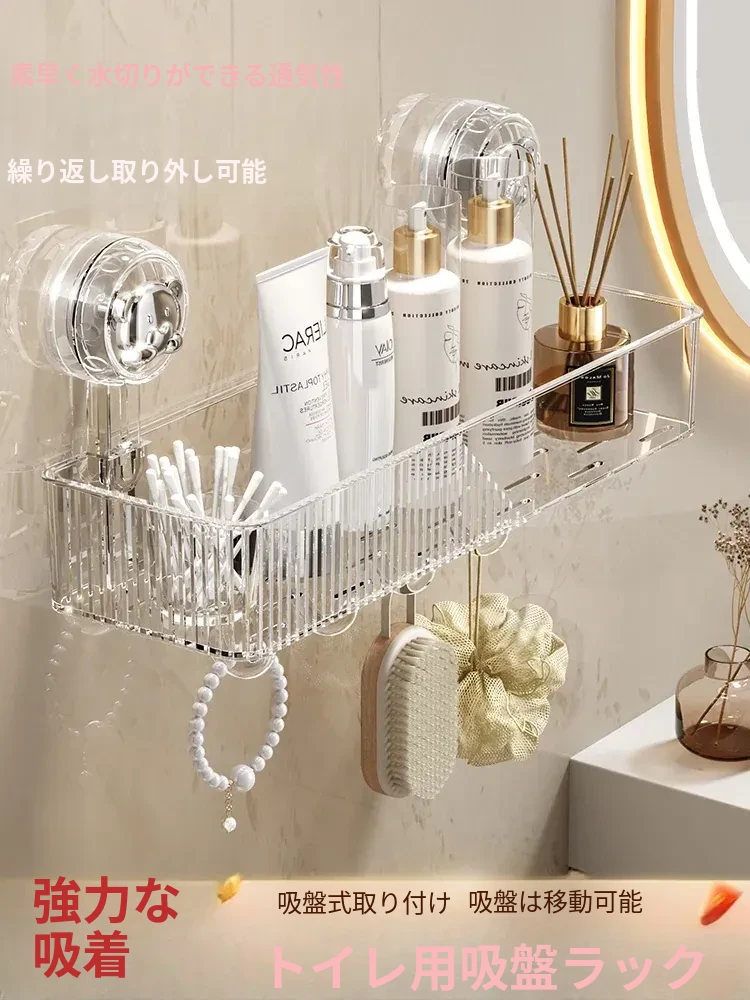 吸盤式トイレ収納ラック - 壁掛けで簡単取り付け、穴あけ不要!バスルームや洗面台のスペースを有効活用し、清潔感のあるトイレ空間を実現します。収納力抜群で、すっきり整理整頓!