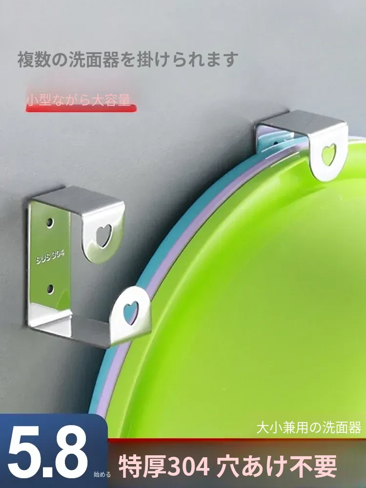 壁掛け洗面器フック!穴あけ不要で簡単取り付け!バスルームやトイレにぴったりな洗面器収納ラック。便利でスタイリッシュなスペース節約アイテム、あなたの生活をもっと快適に!