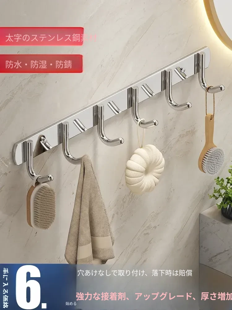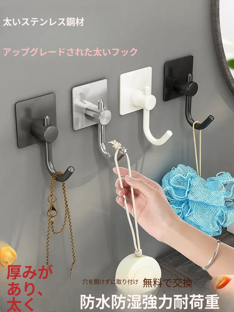 強力ステンレス製フック!穴を開けずに取り付け可能なバスルームドア用フック。家庭用に最適な無痕粘着フックで、キッチンやバスルームでもしっかりと荷重を支えます。さあ、スッキリとした空間を手に入れましょう!
