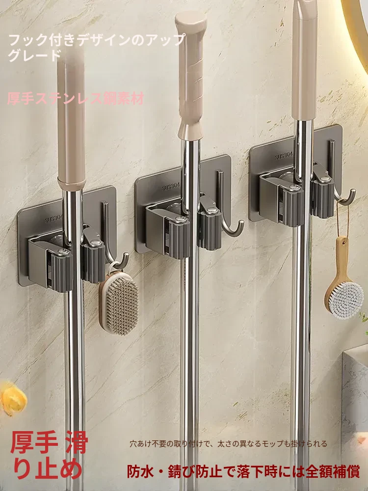 トイレ用壁掛けモップクリップ - 簡単設置、穴あけ不要!強力粘着でしっかり固定、掃除用具をすっきり収納。整理整頓を実現する便利アイテム!