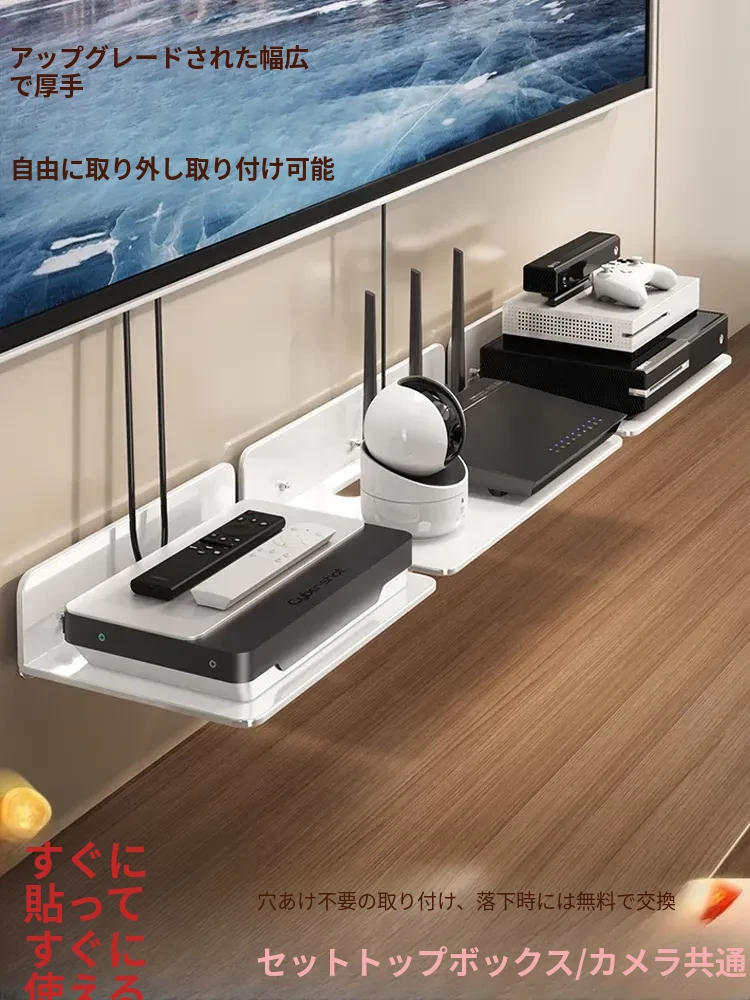 穴あけ不要のルーター収納ラック!壁掛け式でスッキリ収納、機器をしっかり固定。Wi-Fiと電源タップを一元管理できる便利なアイテム。お部屋をスッキリ整頓し、快適なネット環境を実現!
