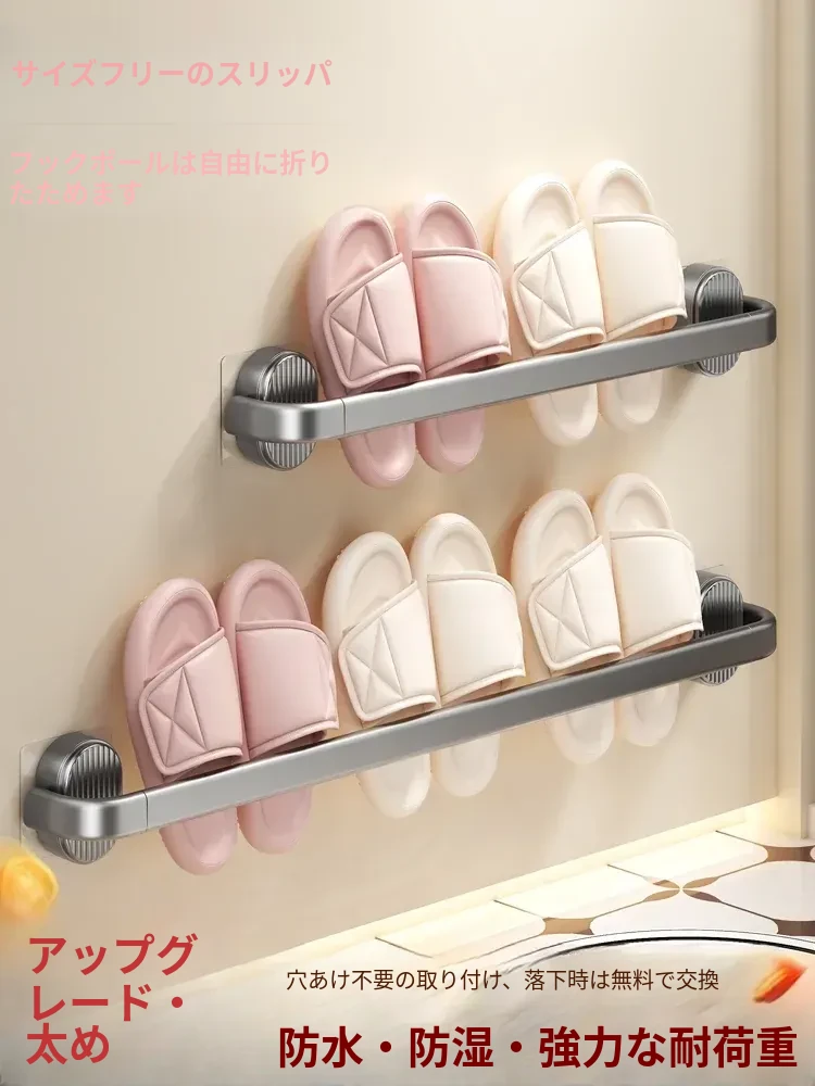 バスルーム用穴あけ不要スリッパラック!トイレや浴室にぴったりの便利収納アイテム、壁に掛けるだけでスッキリ整理!靴やスリッパをおしゃれに収納できる魔法のようなアイテムです!