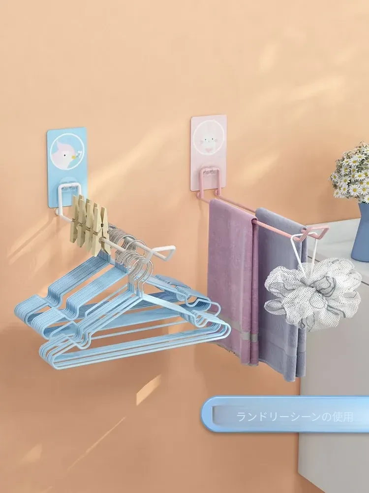 吸盤式衣類ハンガー収納神器!家庭用バルコニーに最適な多機能伸縮式、壁掛けタイプで穴あけ不要。無痕で衣類をスマートに収納できる!おしゃれで便利な衣類収納ソリューション!