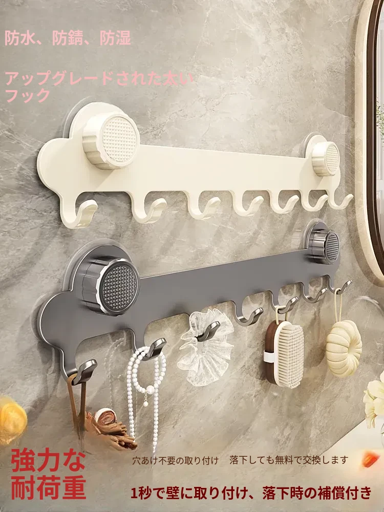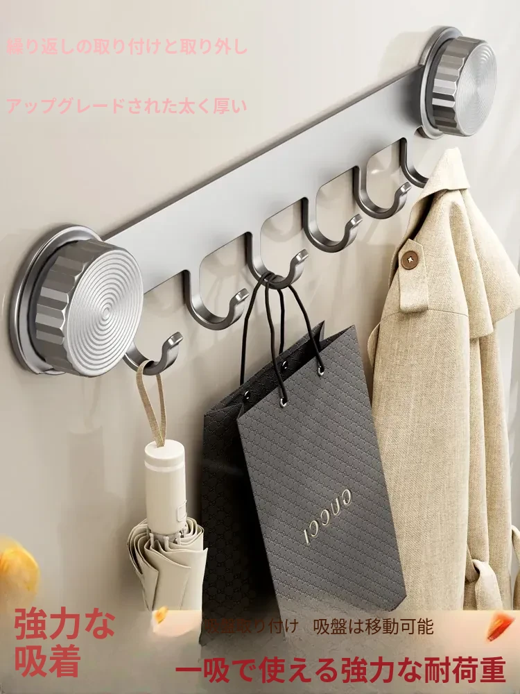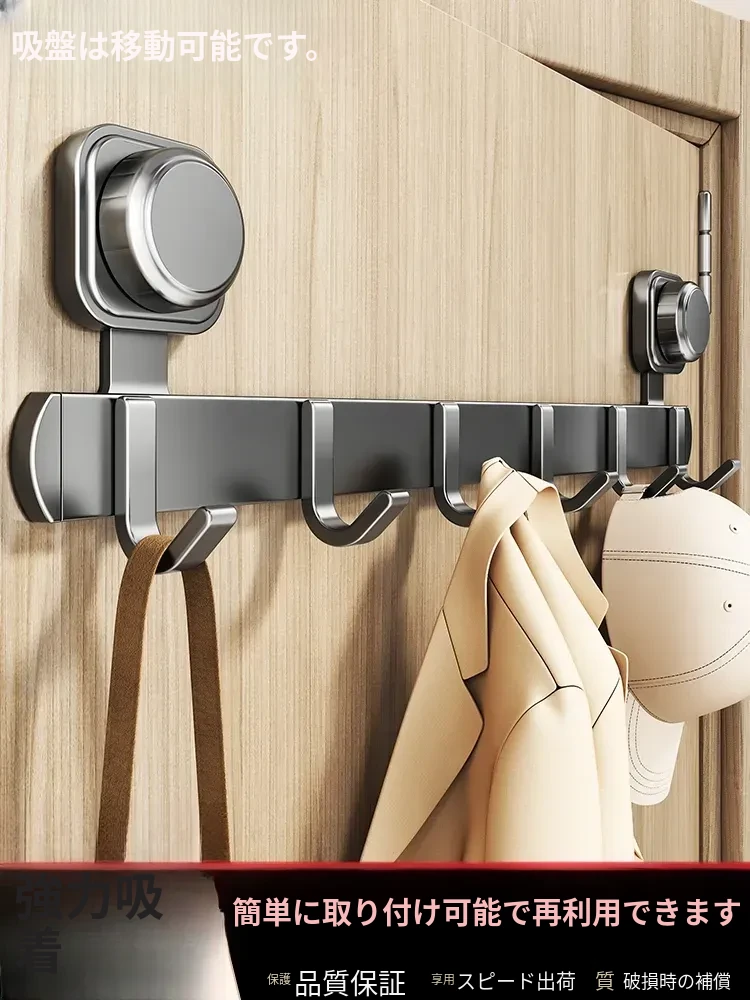 強力吸盤フック|ドア裏に取り付け可能!穴あけ不要で、バスルームや玄関の衣類や小物をすっきり収納。耐荷重性抜群の壁掛けハンガーで、便利さとスタイリッシュさを実現!