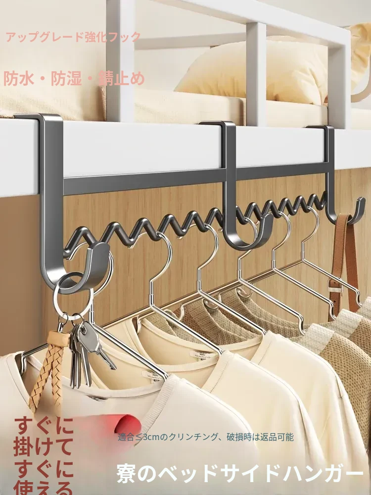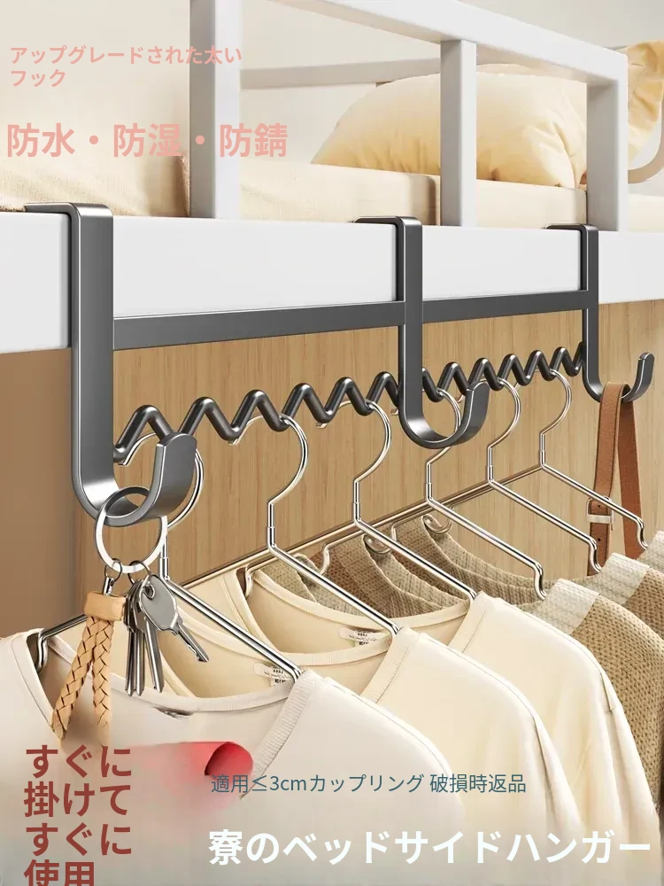 寮用ベッドサイドハンガー - 衣類収納の必需品!寝室をスッキリ整理、上下二段ベッドにも対応した便利なフック付き収納ラック。これであなたの生活空間をもっと快適に!