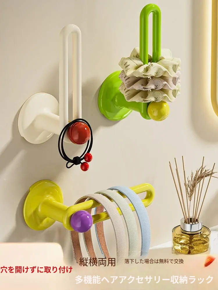 穴あけ不要!すっきり収納できるヘアアクセサリーラック - ヘアゴムやピンもおしゃれに整理!バスルームやどこでも使える便利アイテム!