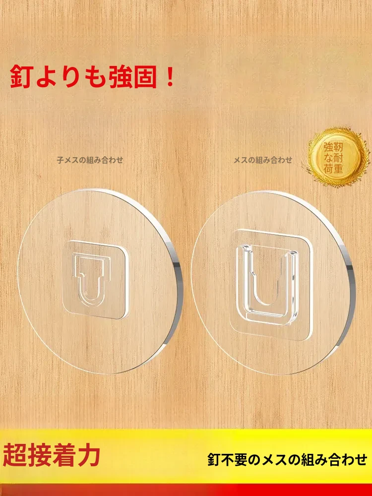 吸盤式ドア裏フック - 穴あけ不要!強力粘着で重い物もしっかり支える、バスルームや壁に最適な衣類掛け&収納ラック