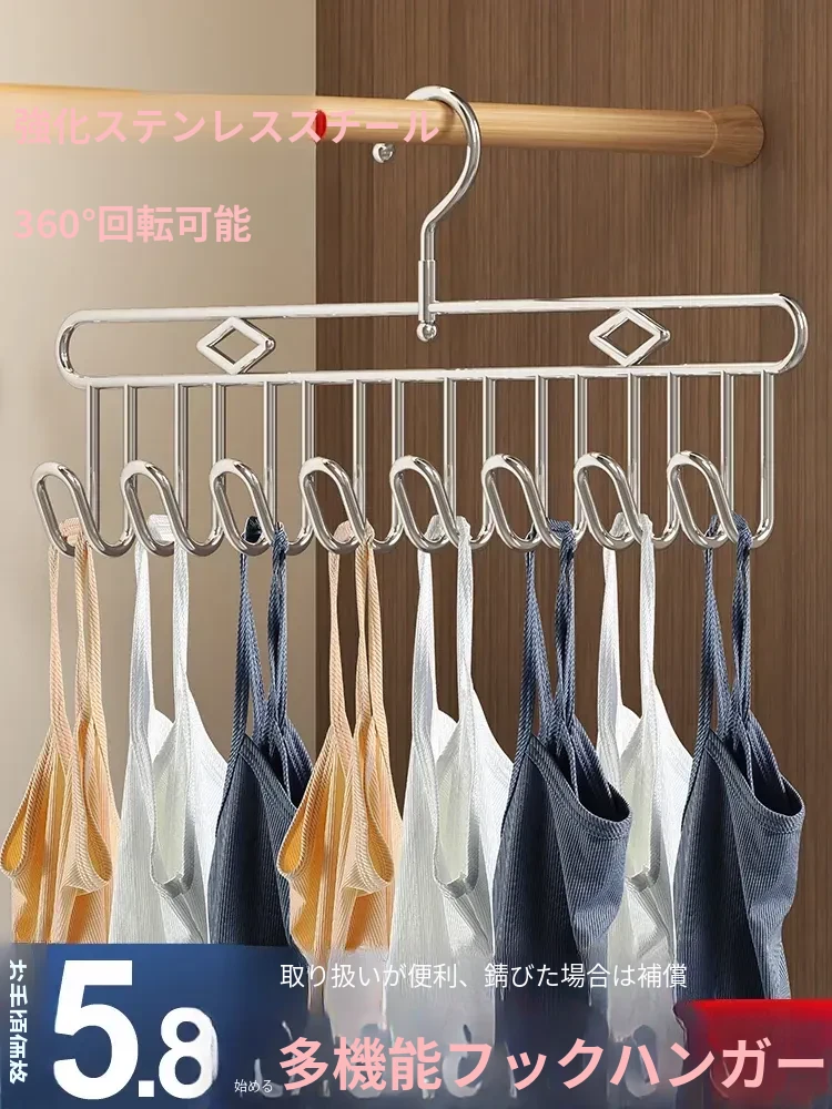 ステンレス製クローゼットフック 学生寮に最適な収納ハンガー!帽子・衣服・バッグを簡単に整理できる、穴を開けずに取り付け可能な便利アイテム!