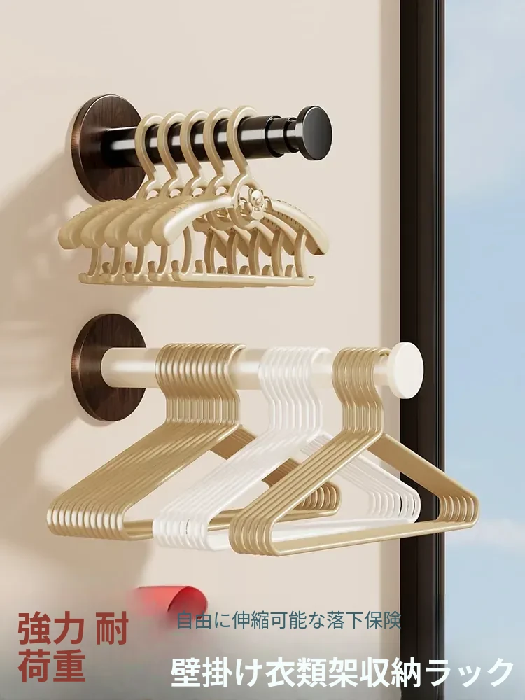 壁掛け式衣類収納ハンガー - 穴あけ不要で簡単取り付け!多機能で伸縮可能、バルコニーや家庭に最適な衣類整理と物置きにぴったり。省スペースでおしゃれな生活を実現!