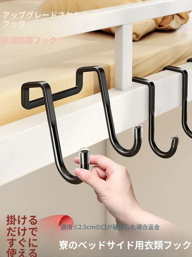 寮のベッドサイドに最適!穴あけ不要のハンガーラック - 帽子や服、バッグをすっきり収納できる便利な掛けフック。上下二段ベッドにも対応!お部屋をスッキリ整理整頓しましょう!