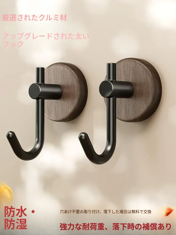 強力粘着フック - ウォールマウントの無穴胡桃木製フック!バスルームやドアの裏に最適、衣類や帽子をしっかり支える便利アイテム。おしゃれで機能的な収納を実現します!