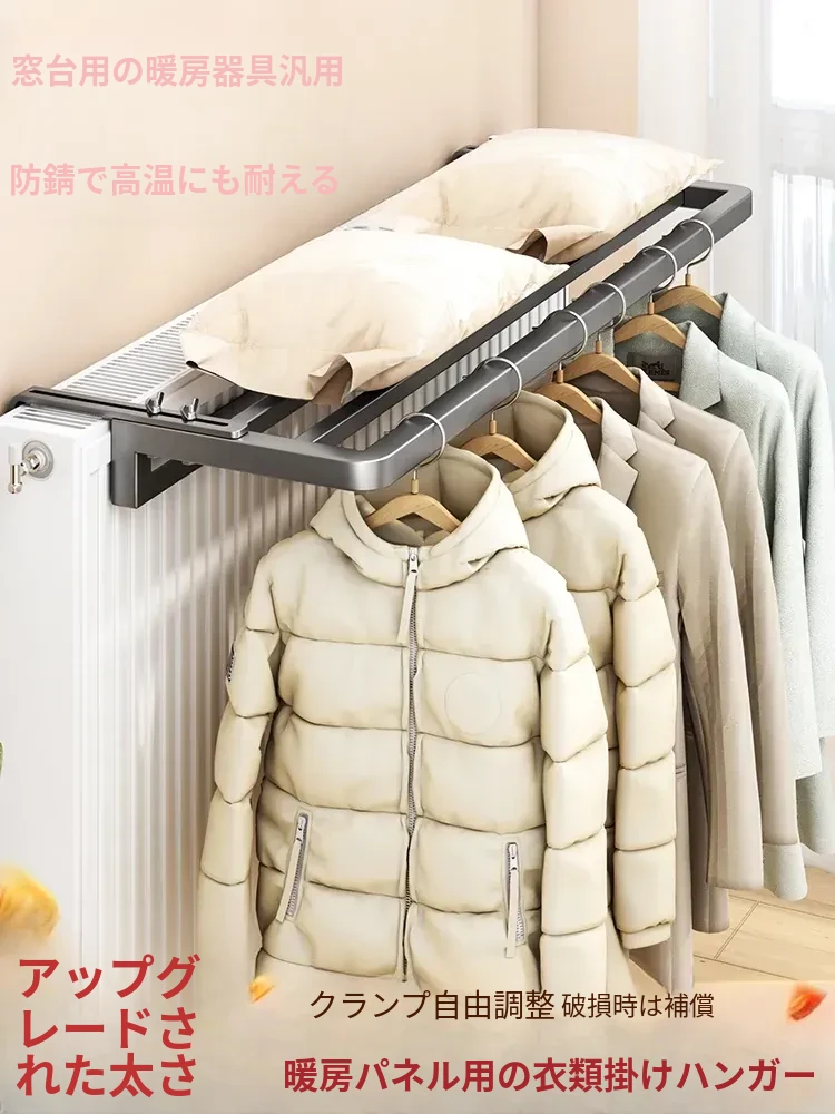 暖房用衣類干しラック|便利なハンガーフック付き!衣類をしっかり干せる優れたアイテムで、洗濯物を速やかに乾かします。コンパクトで使いやすいので、スペースを有効活用できます!