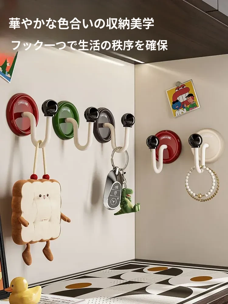 強力吸盤フック – 穴あけ不要の便利な鍵掛けアイテム!無痕で玄関をスッキリ整理、帽子や小物もおしゃれに収納。入室時の必需品、今すぐ手に入れて快適な生活を!