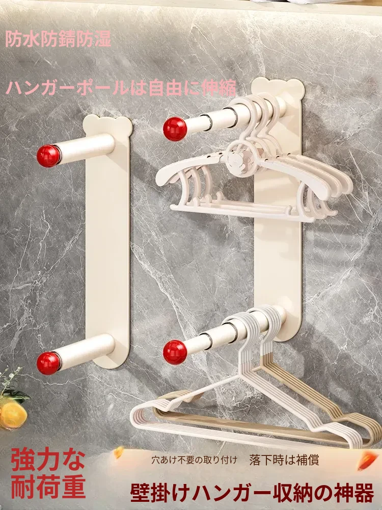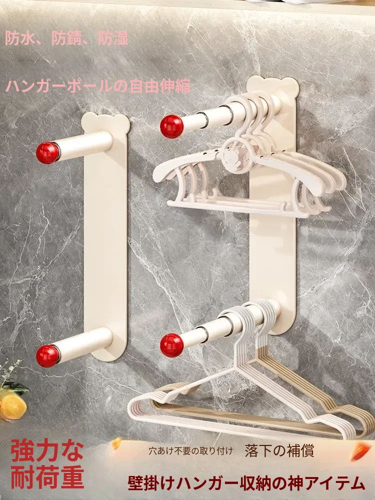 万能衣架収納!家用バルコニーに最適な多機能伸縮式壁掛けハンガー。穴あけ不要で、壁に優しい無痕設計!お部屋をスッキリ整理整頓!