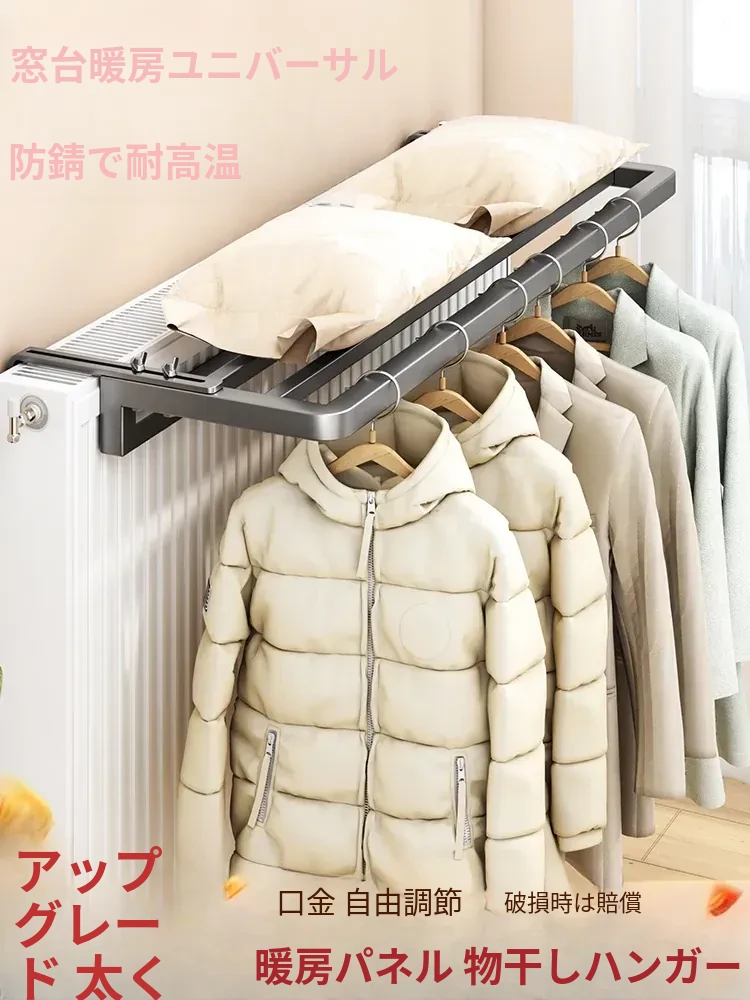 暖房用の衣類干しラック!暖房パイプ上に設置可能な便利な収納棚。窓の手すりにも取り付けられ、家庭での衣類乾燥をサポートする優れたアイテムです。快適な乾燥体験をお楽しみください!