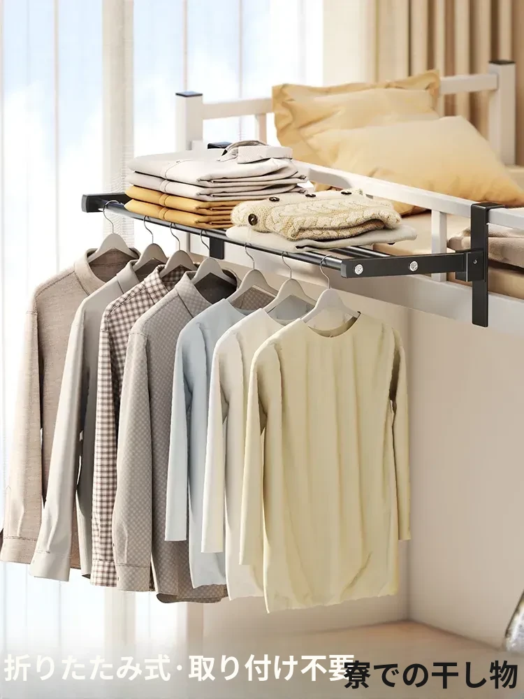 学生寮に最適!ベッドサイドハンガー&収納ラック - おしゃれな衣類干しや小物収納に!上段用の便利なアイテムで、スペースを有効活用し、快適な生活をサポートします。