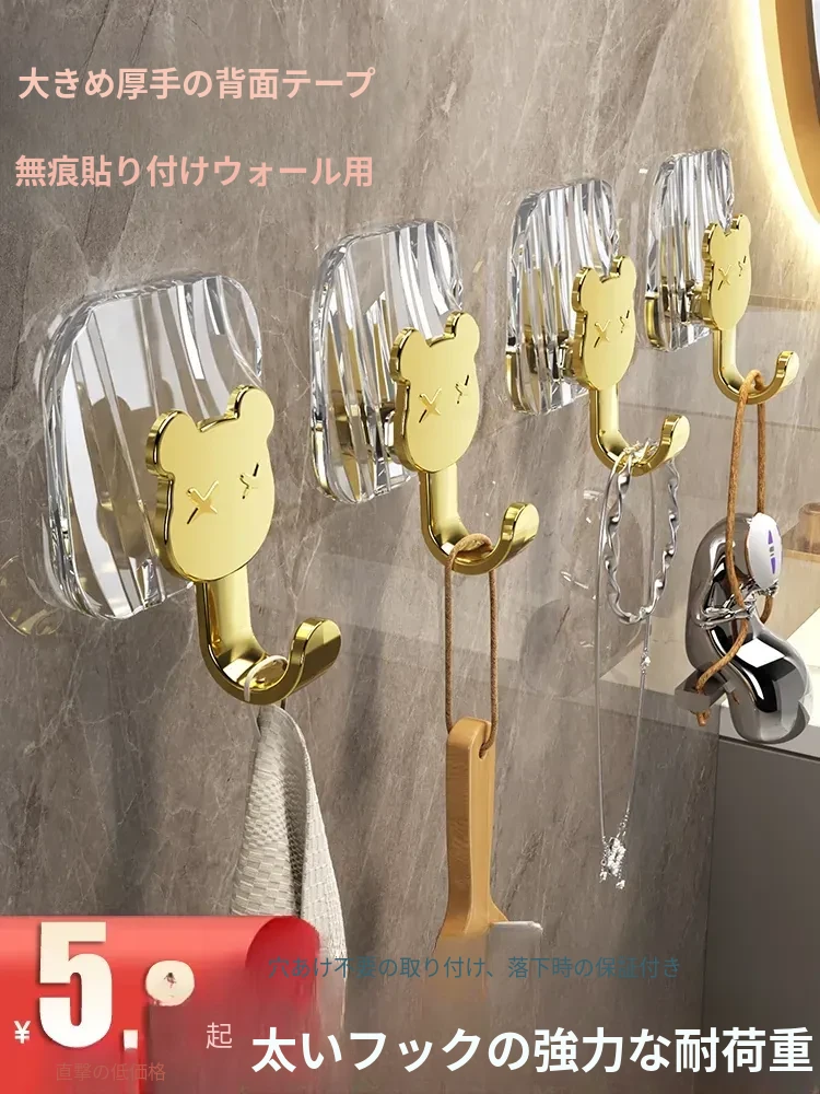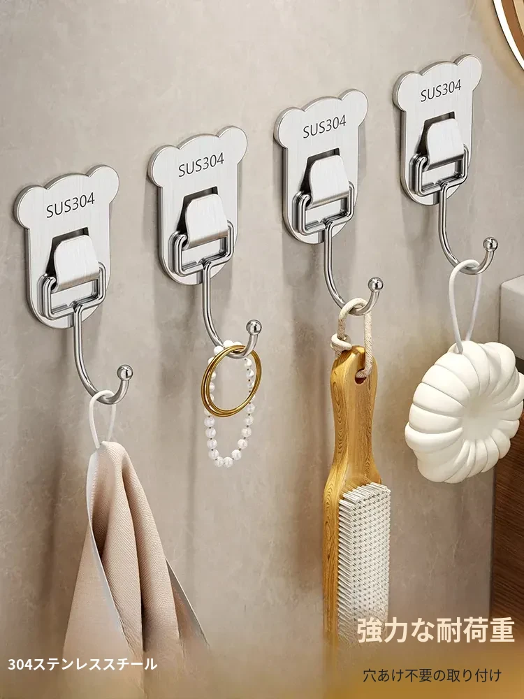 強力粘着フック - 穴を開けずに簡単取り付け!キッチンやバスルームの壁に最適、無痕で衣類をしっかり支える便利なフック!