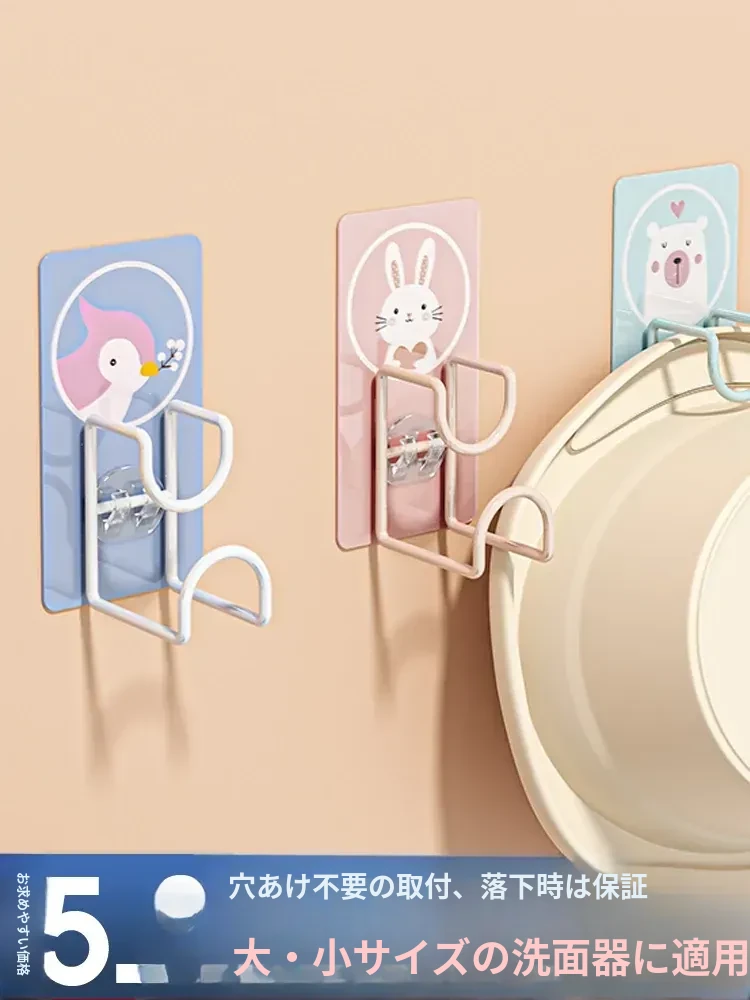 バスルームの必需品!取り付け不要の洗面器フック - お風呂場やトイレに最適な収納ラック!シンプルで便利なデザインで、洗面器をスッキリ収納!家族みんなのための便利アイテム!