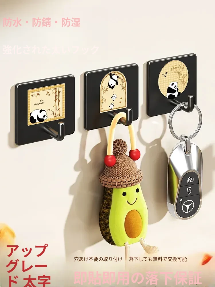 強力耐荷重のフック粘着剤、ドリル不要で簡単取り付け!玄関やバスルームに最適な無痕フック、バッグや鍵をスッキリ収納。おしゃれで実用的なアイテムです!