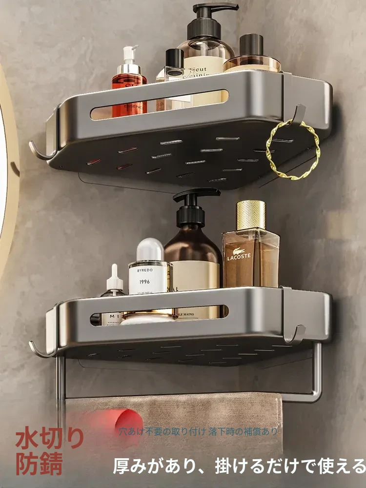 トイレ用三角形収納ラック - 簡単取り付け、穴あけ不要!壁掛け式で洗面所やバスルームの隅を有効活用。整理整頓が楽々、スペースを最大限に活かす収納ソリューション!