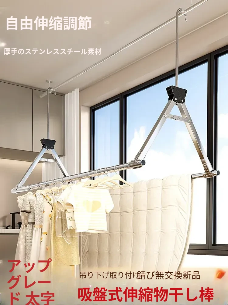 バルコニー用の伸縮式折りたたみ物干しラック - 多機能で昇降可能、衣類や布団も楽々干せる便利アイテム!