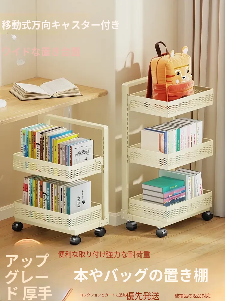 移動式ブックシェルフ!多層収納の学生用書籍ラック、家のデスク下にぴったりのバックパック置き場。収納力抜群で、部屋をすっきり整理整頓!