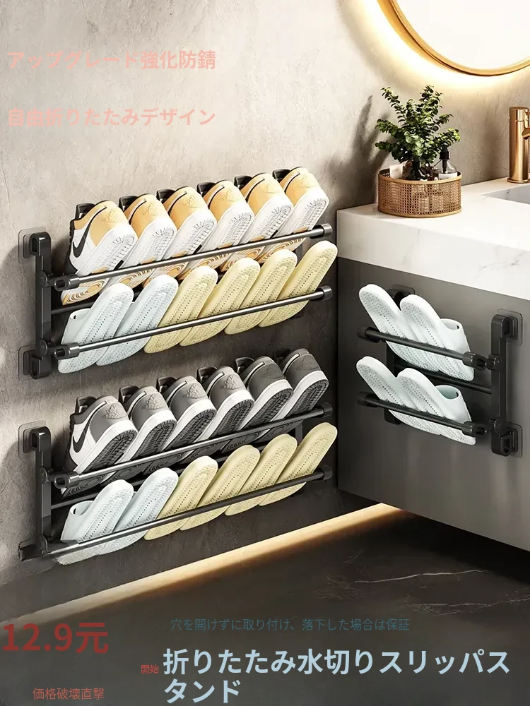 壁掛けトイレ用スリッパラック - 穴あけ不要!おしゃれで便利な収納神器、バスルームをスッキリ整理!靴をスマートに収納し、清潔感を保つアイテムです。