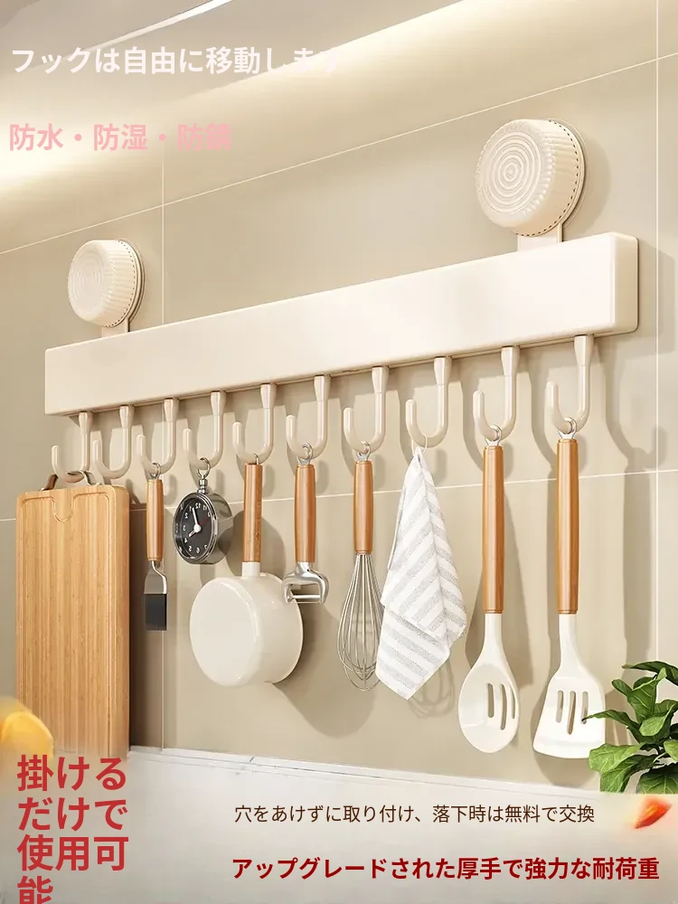 吸盤式キッチンフック|穴あけ不要の多機能収納ラック|フライ返しやスプーンを一体で整理できる壁掛け収納!キッチンをスッキリおしゃれに!