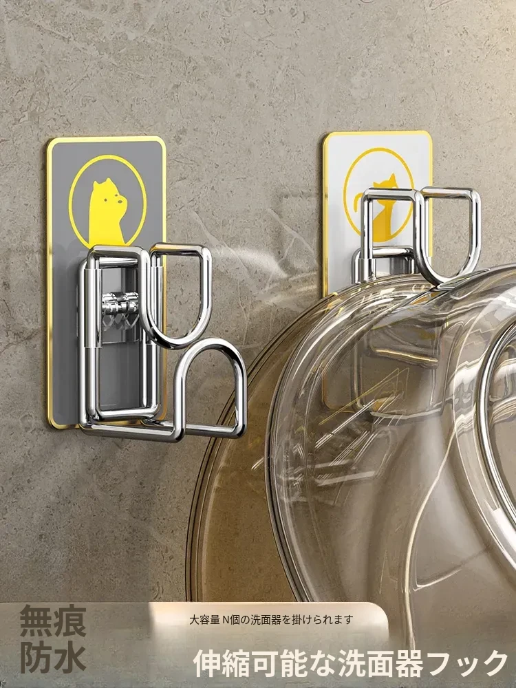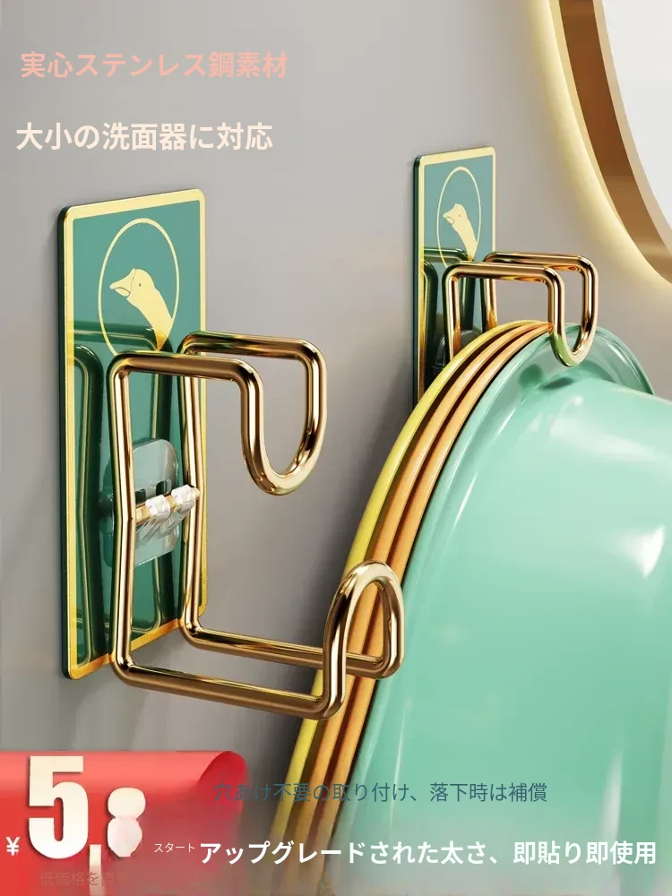 トイレ用収納ラック 洗面台のための壁掛けフック 穴あけ不要のバスルーム便利グッズ 洗面器をスッキリ収納できる魔法のアイテム!