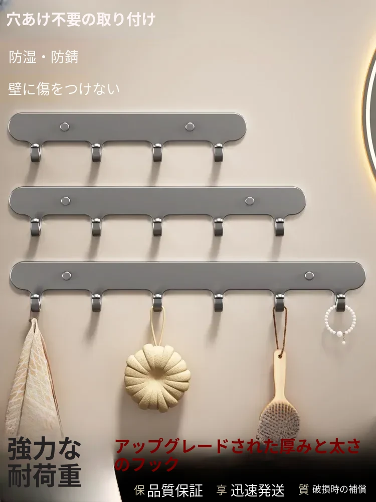 穴あけ不要!強力粘着フックでおしゃれなバスルーム・キッチンを実現!タオルや衣類をスマートに収納できる壁掛けフック、使い方自由自在でスペースを有効活用!