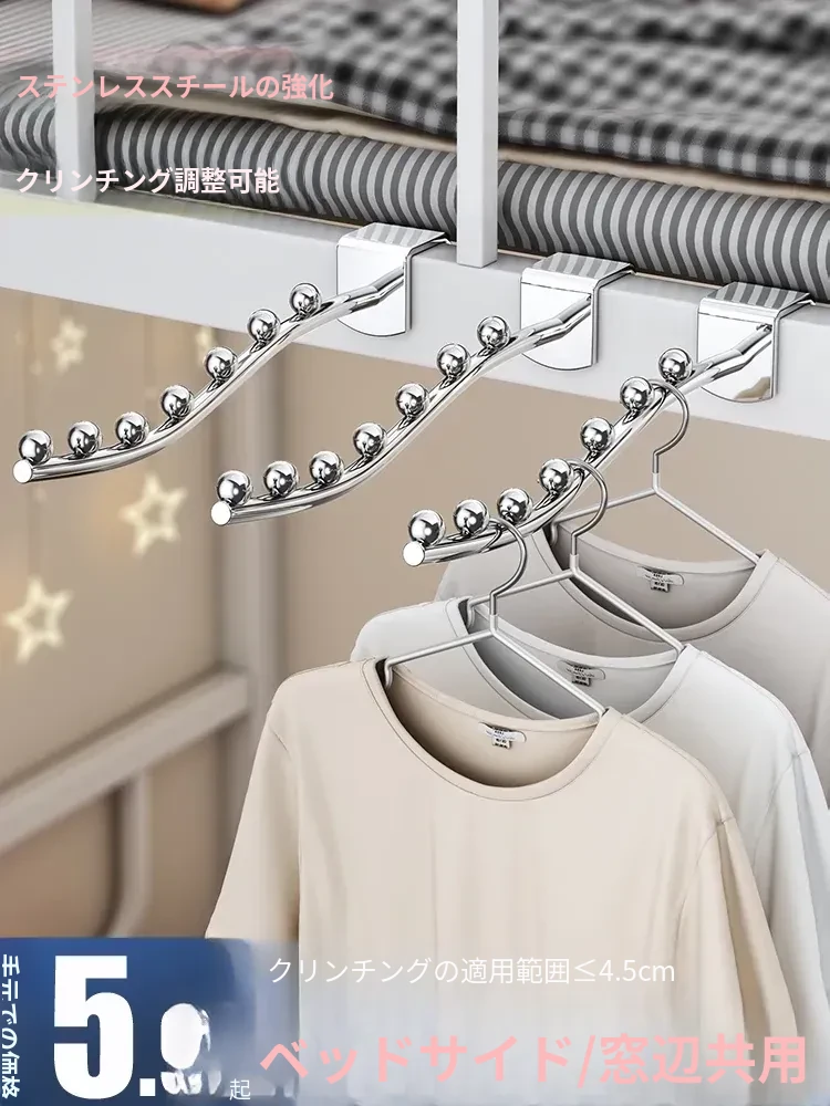 宿舎用フック!穴を開けずに簡単取り付け!ベッドサイドやバルコニーに最適なステンレス製ハンガーで、衣類をスッキリ整理!寝室をおしゃれに演出する便利グッズ!