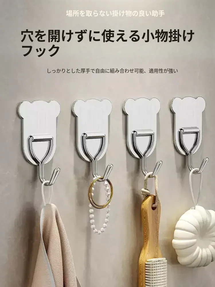 強力粘着フック【取り付け簡単】穴あけ不要!バスルームやキッチン、ドアの裏に最適。衣類やタオルをしっかりサポートするステンレス製の粘着フックで、スッキリ整理整頓!