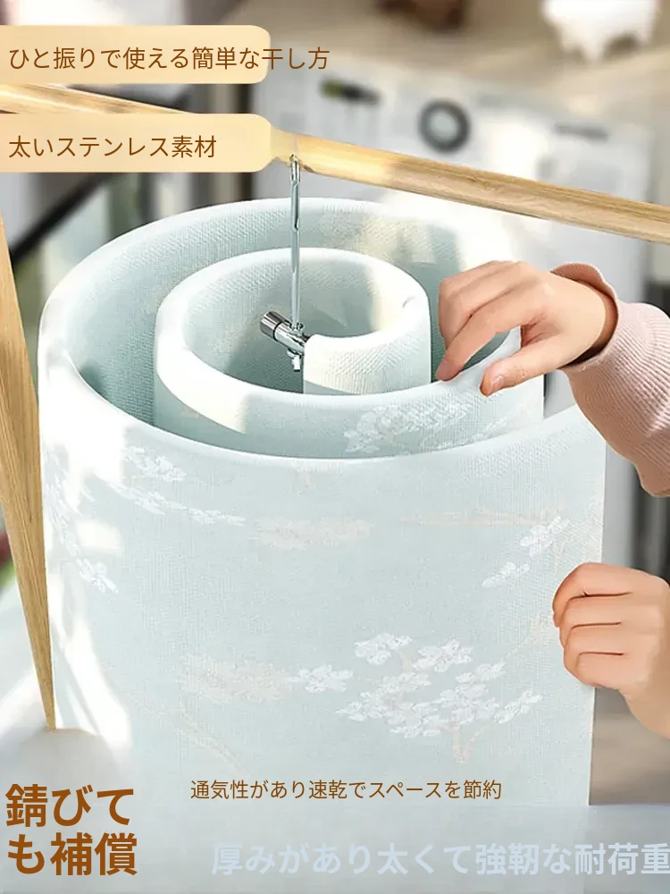 洗濯物を楽に!螺旋式デザインの多機能バルコニー用干し台。ステンレス製で耐久性抜群!シーツや布団カバーもすっきり干せる、家庭に必須のアイテム!