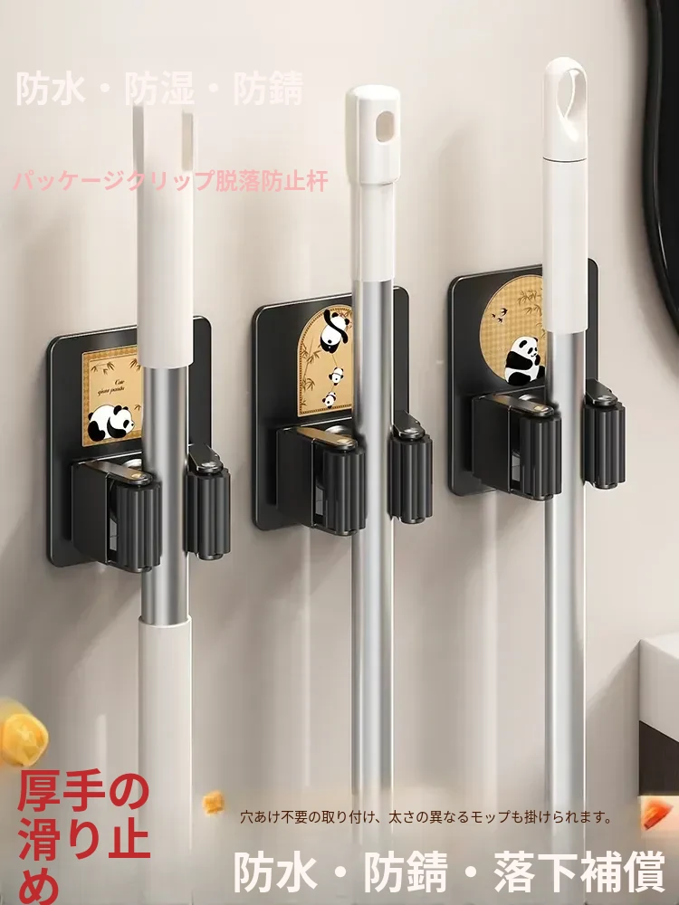 中古風のおしゃれなモップ壁掛けフック!トイレやキッチンに最適、穴を開けずに簡単取り付け!掃除用具をスッキリ収納できる便利アイテム!掃除道具をおしゃれに整理整頓!