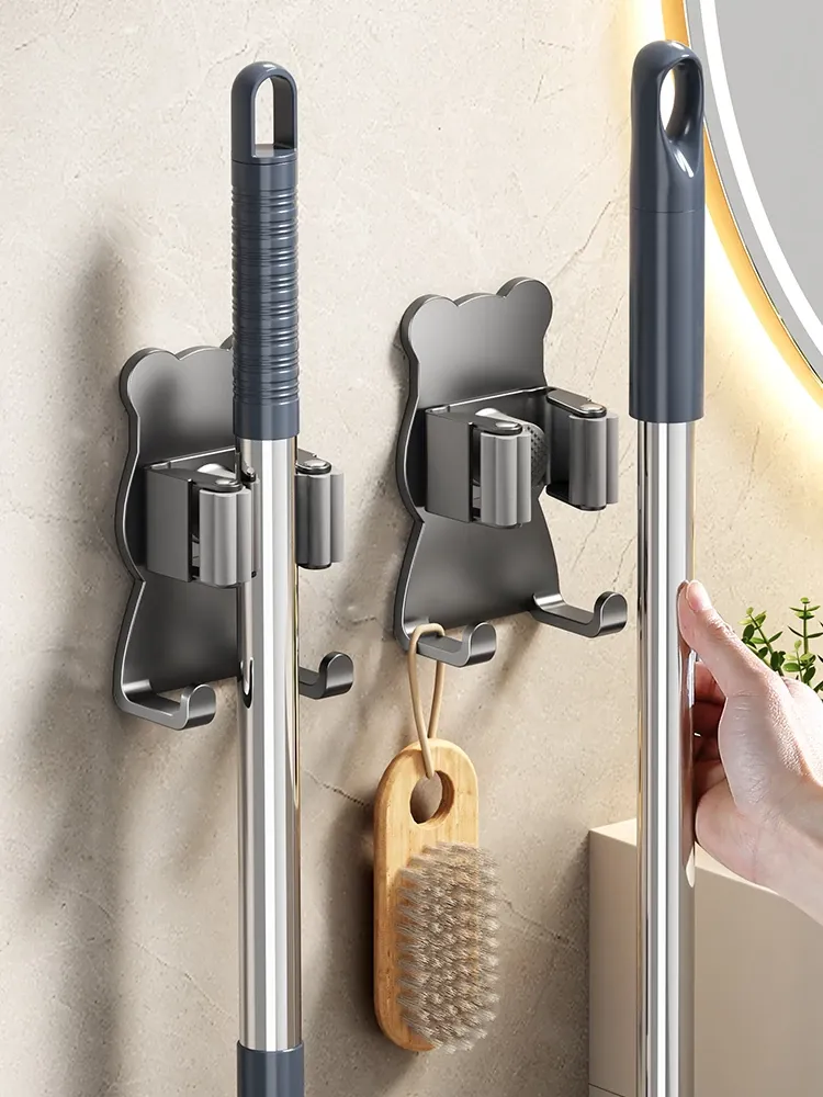 壁掛けモップホルダー&掃除道具フック - 穴あけ不要で簡単取り付け!トイレやキッチンに最適な収納グッズで、スッキリ整理整頓!あなたの掃除をもっと便利にする魔法のアイテム!