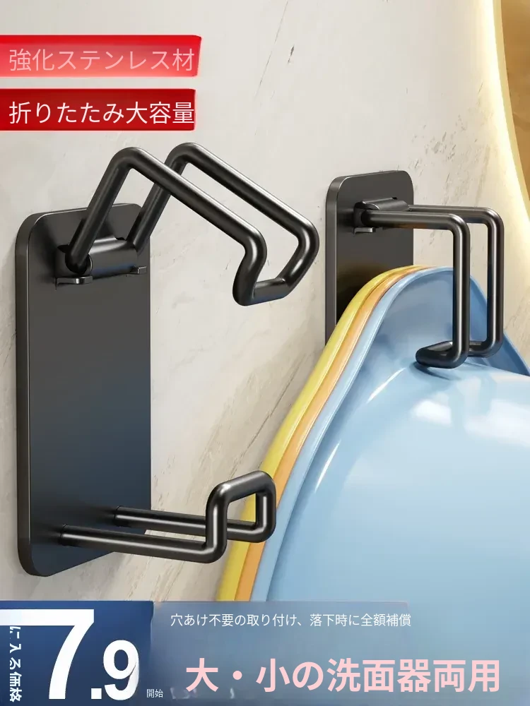 壁掛け洗面器フック - 穴あけ不要で簡単取り付け!バスルームの洗面器収納ラック、洗面所をスッキリ整理する便利アイテム!おしゃれで実用的なバスルームの必需品!